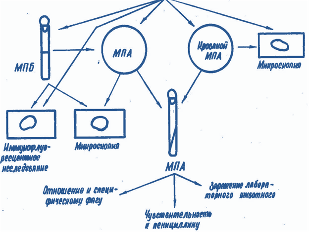 Основной метод диагностики – бактериологический – выделение чистой культуры и её идентификация, с обязательной проверкой на патогенность для лабораторных животных. В случаях, когда исследуемый материал сильно загрязнен сопутствующей, особенно гнилостной, микрофлорой, используют биологическую пробу: подкожно заражают белых мышей или морских свинок.