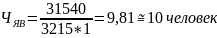 гдеQi − объём работы в год, 31540 ед..;НВi − норма выработки за год ед./чел. (3215);ki – коэффициент выполнения норм выработки принимаем 1.