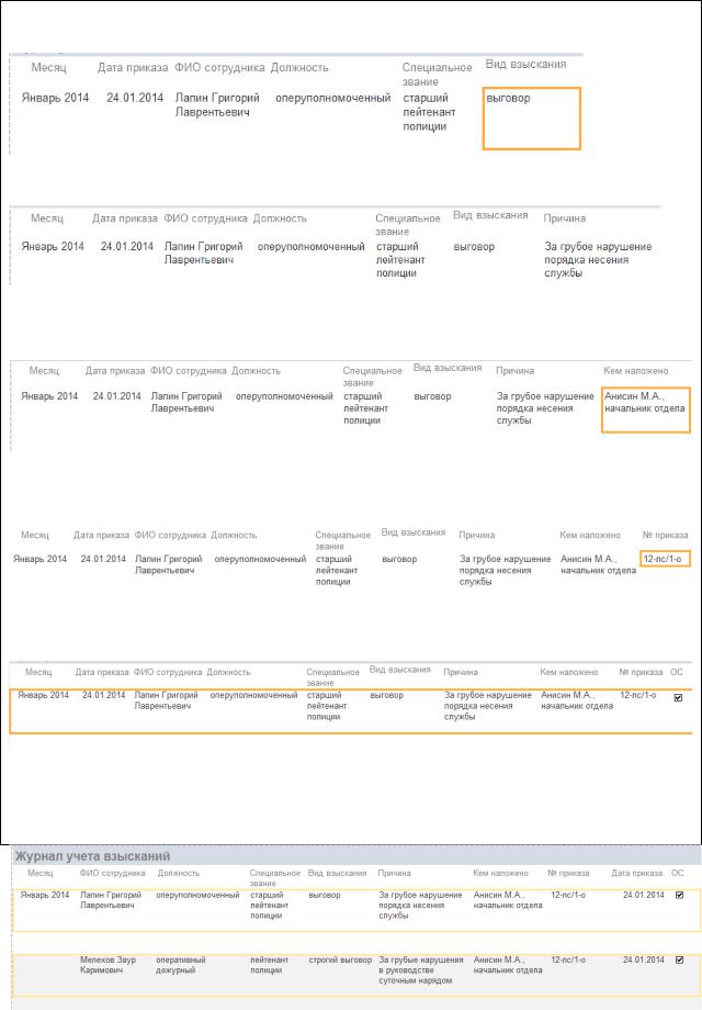 Отчет о приказах со взысканиями. Должен содержать информацию о приказах, которыми налагались взыскания. Необходимо указать дату, номер приказа, ФИО и должность руководителя, подписавшего приказ.