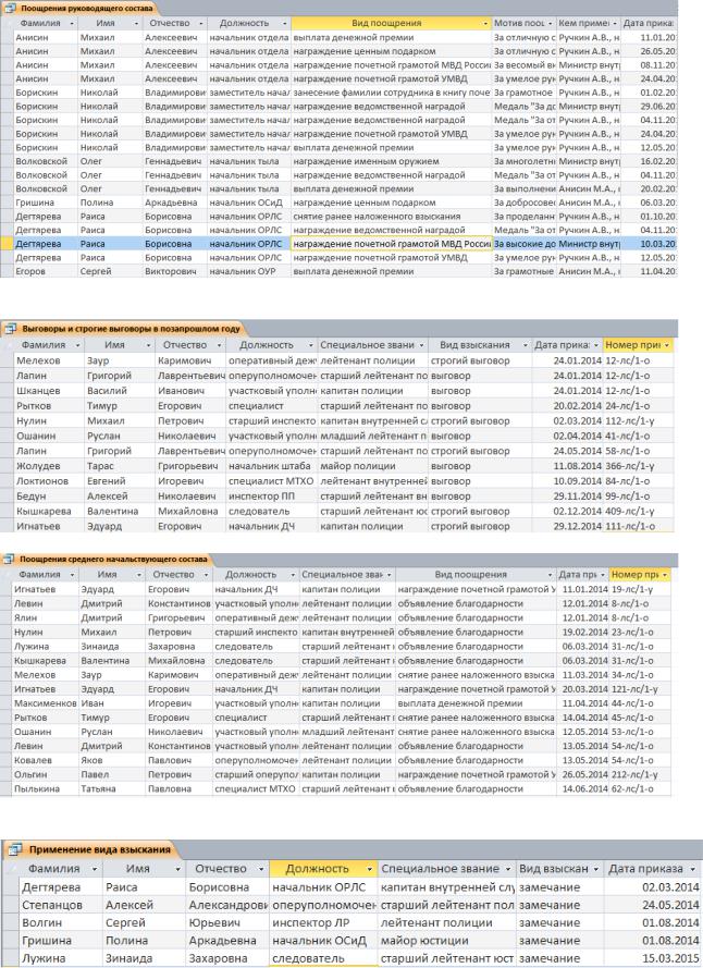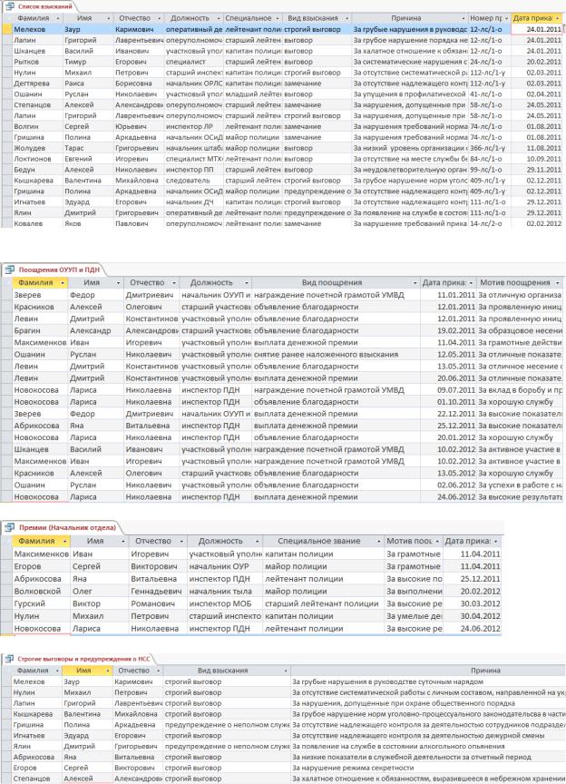 1. Отчет – Журнал учета поощрений. Должен реализовывать структуру журнала, приведенную в задании 2. При создании отчета сделайте изменения в структуре, аналогичные изменению в журнале учета взысканий. Отредактируйте созданный отчет.