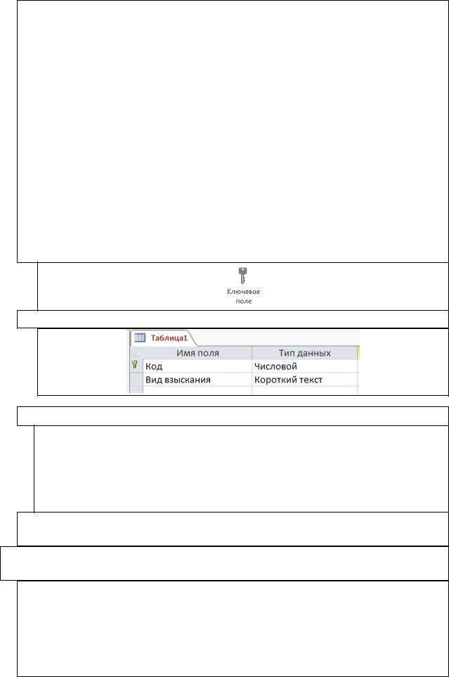 сятичных знаков – 0, Обязательное поле – Да, Индексированное поле – Да (совпадения не допускаются). Последний параметр позволит однозначно идентифицировать вид взыскания по его числовому коду.