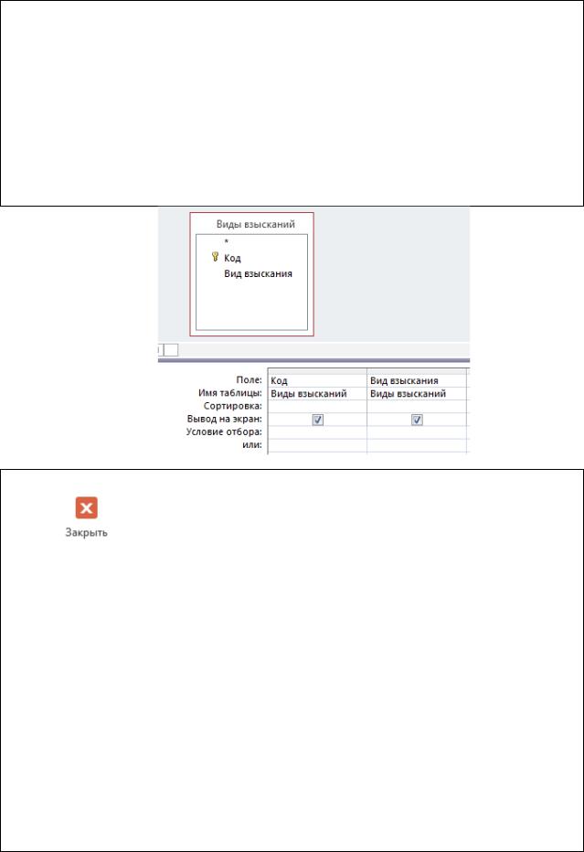 К примеру, данные в поле Код взыскания таблицы Журнал учета взысканий должны выбираться из списка поля Код таблицы Виды взысканий. Однако, для удобства ввода можно сделать так, чтобы пользователь не просто выбирал код взыскания, но и видел, какое взыскание соответствует этому коду.