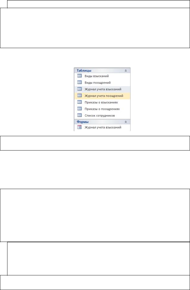 1.Выделите созданную форму Журнал учета взысканий, нажмите правую кнопку мыши и выполните команду контекстного меню
