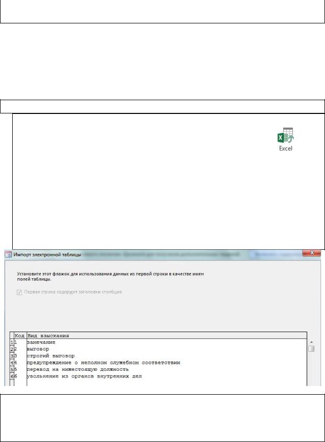 1.Импортируйте данные в таблицу Виды взысканий.