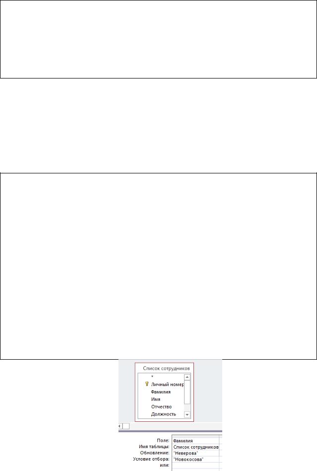 Предположим, что сотрудница по фамилии Новокосова сменила фамилию на Неверова. Требуется отразить это изменение в базе данных.