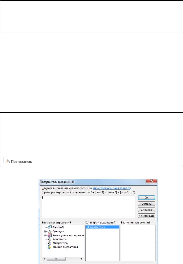 4.Поместите курсор в строку Поле рядом с последним добавленным полем и на вкладке Конструктор нажмите кнопку Построитель