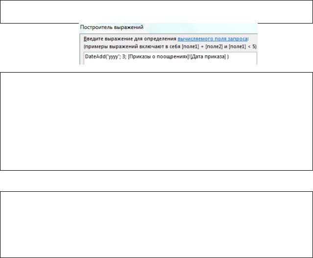 Приказы о поощрениях и двойным щелчком добавьте поле Дата приказа. Удалите появившийся шаблон «Выражение» в выражении.