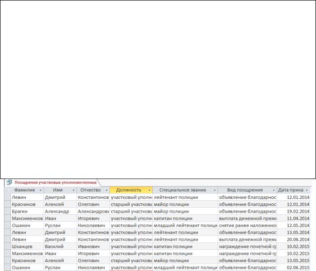 6.Закройте запрос, присвоив ему имя Поощрения участковых уполномоченных.