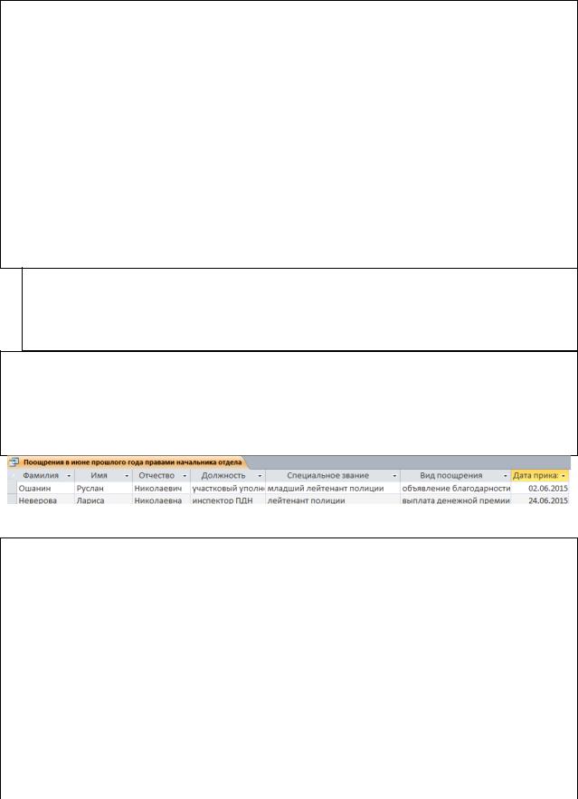 8.Закройте запрос, сохранив его под именем Поощрения в июне прошлого года правами начальника отдела.