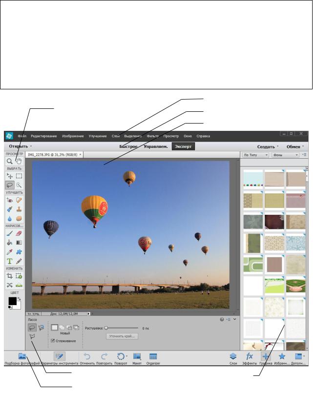 Рисунок 1 – Интерфейс Adobe Photoshop Elements 12 (режим Эксперт)