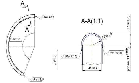 Деталь имеет точный размер: ØА = (Ø646Н11).