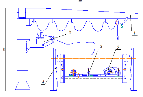 Консольно-поворотным краном, позиция 1 (см. рисунок 3.1.4), укладывается собранный узел, позиция 2, на раму двухстоечного кантователя с постоянной осью, позиция 4. Этот кантователь универсален, прост по конструкции, дешевый, компактен и требует меньшую мощность привода, поскольку поворот изделия происходит вокруг продольной оси, проходящей вблизи центра тяжести. Двухстоечный кантователь имеет только маршевую скорость. Сварка узла производится на кантователе для обеспечения сварки в положении в лодочку, это обеспечивает равномерное наложение шва и предостерегает от появления деформаций, таких как неравномерность высоты катета, подрезы и т. д. Сварка собранного узла производится полуавтоматической сваркой в среде углекислого газа, полуавтоматом ПДГ-508, позиция 5, закрепленным на консольно-поворотном кране, сварочной проволокой Св-08Г2С, диаметром 1.6 мм., при сварочном токе 240 А. Сварные швы катетом 10 мм варятся за два прохода, катетом 12 мм - за три прохода, катетом 16 мм - за 4-5 проходов, нестандартные швы, такие как №12, 13, 14, 15, 16 (см. чертеж) за 4-6 проходов.