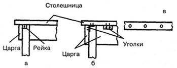 столешницы с царгой при помощи промежуточной рейки; б - закрепление при помощи