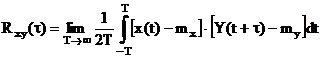 значениями случайных сигналов x(t) и y(t), разделенными интервалом времени τ