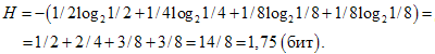 I = - (0,1∙log20,1 + 0,2∙log20,2 + 0,3∙log20,3 + 0,4∙log20,4) ≈ 1,85 бита