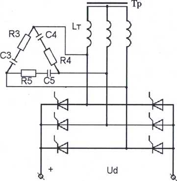 Для защиты клапанов от переключающих перенапряжений используются RC-цепи, которые подключаются параллельно тиристорам (см. Рисунок 5.1).