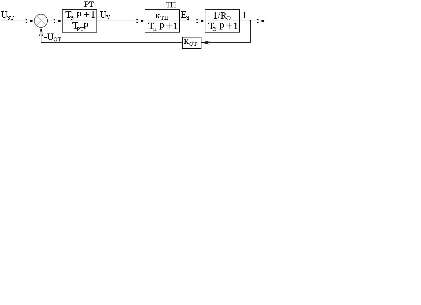 В электроприводах КТЭ используется ПИ-регулятор тока. Структурная схема контура регулирования якорного тока представлена на рисунке 6.2.