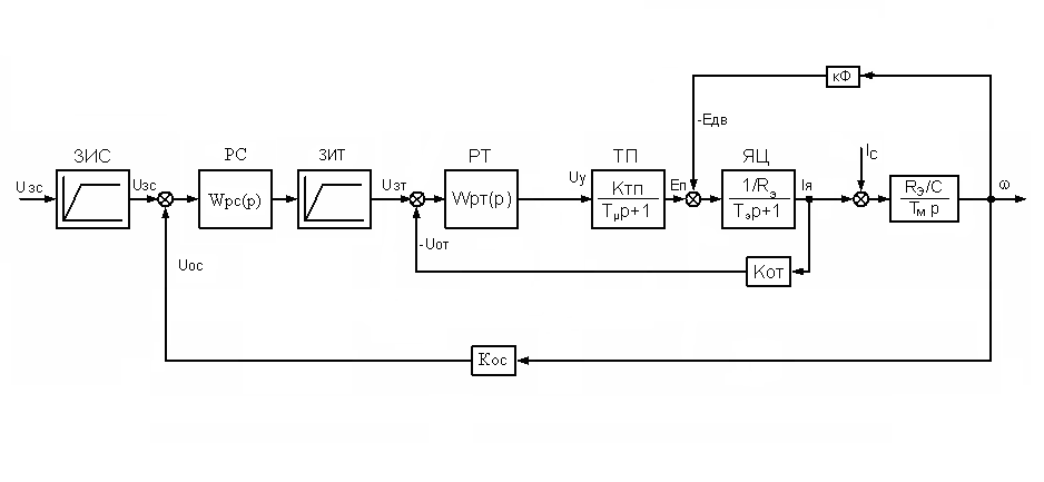 Разработана структурная схема автоматической системы управления электроприводом. Рассчитаны основные параметры системы TP-D и все необходимые параметры контура управления, коэффициенты обратной связи и датчики.