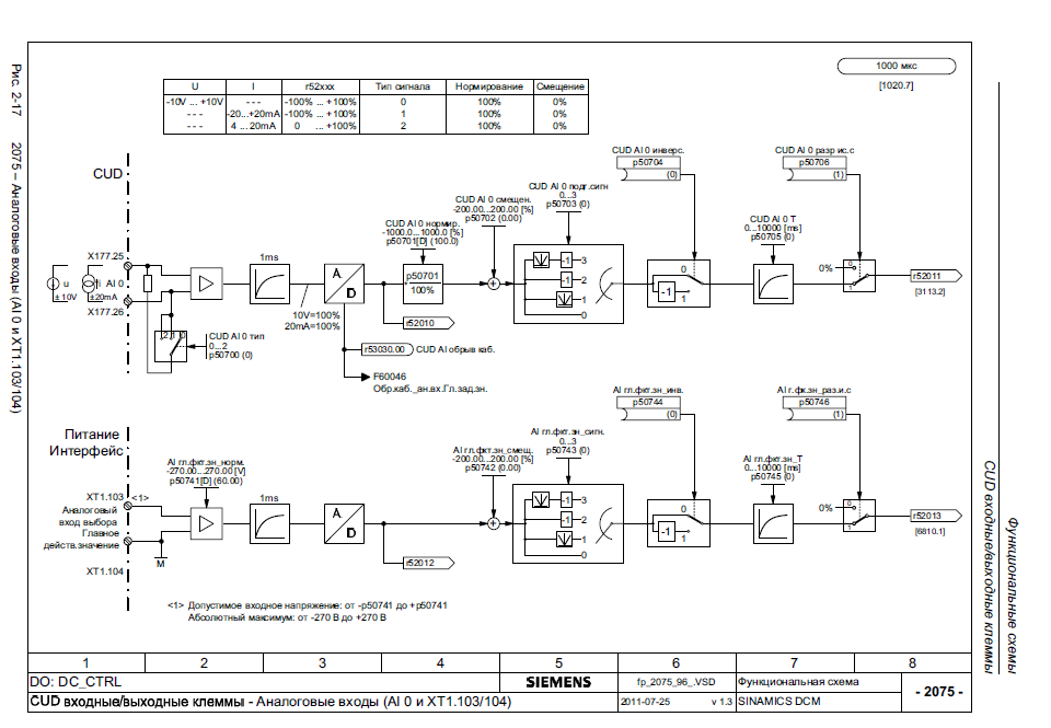 После преобразования в цифровое значение значение аналогового входа можно гибко настраивать с помощью параметров для нормализации, фильтрации, выбора математического символа и назначения смещения. Поскольку значение доступно в качестве порта, аналоговый вход может использоваться как основной эталон, а также как значение для вспомогательного эталона и для ограничения.