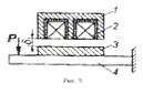 При изменении линейных перемещений (Р) ферритовых сердечник 3 перемещается вертикально, изменяя величину воздушного зазора, что приводит к изменению индуктивности преобразователя.