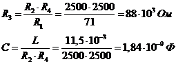 Необходимо в уравнение 1 подставить значение комплексных сопротивлений из уравнений 5 и 6 получим условие равновесия мостовой схемы, приняв между собой вещественные и мнимые части по отдельности.