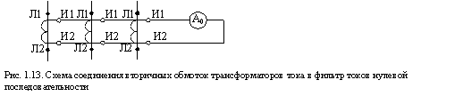 Параллельное соединение вторичных обмоток трансформатора тока образует фильтр тока нулевой последовательности (рис.1.13). Ток через прибор А0 равен току замыкания на землю.