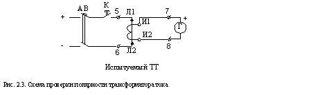 . Проверка полярности обмоток трансформатора тока.