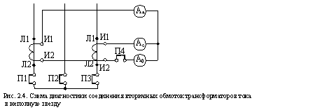 Для диагностики вторичных цепей собирается одна из схем соединений вторичных обмоток трансформаторов тока (рис. 1.8 - 1.12).