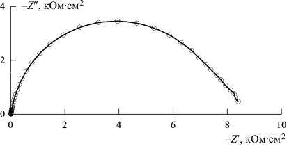 На экспериментальных спектрах импеданса нет прямолинейных участков при высоких частотах. Поэтому можно предположить, что либо исследованные пленки являются практически беспористыми, либо поры в тонких пленках (толщина пленок 0,5–2 мкм) сравнительно широкие, так что электроды с такими пленками ведут себя как плоские электроды.