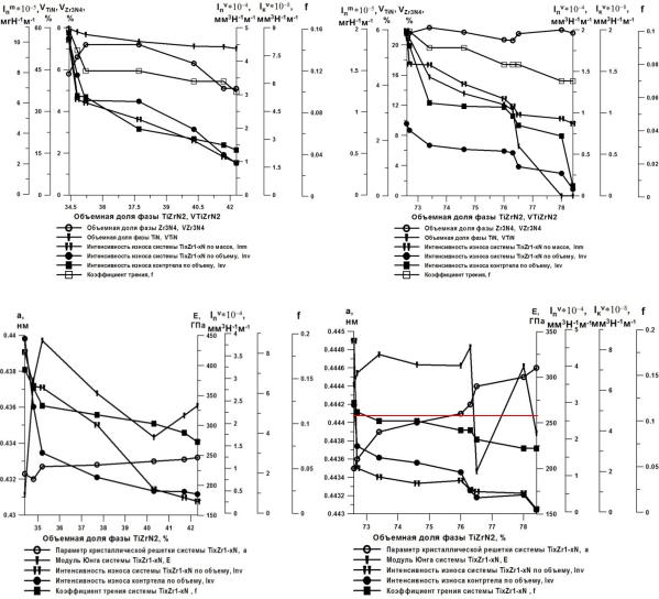 и соотношение с-TiZrN2 и Zr3N4 фаз, содержание Zr, CZr/CTi, так и строение, структура и дефектность поверхности. С повышением Zr и CTi/CZr, уменьшением шероховатости поверхности и размера ОКР улучшаются не