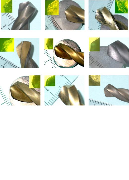 Рис. 3.39. Износ режущей части неупрочненного сверла (а) и сверл с МП, осажденными