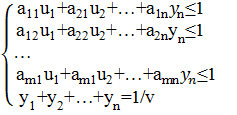 Для игрока 2 необходимо найти минимальную цену игры v. Следовательно, значение 1/v должно стремиться к максимуму.