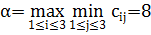 критерий, стратегия выбирается из условия max(minaij) и совпадает с