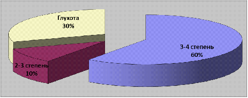 диагноз глухота, у 1 ребенка наблюдается нарушение слуха 2-3 степени (Рис.1).