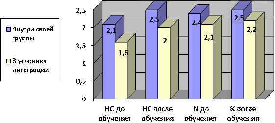 Материалы, полученные в результате сопоставления констатирующего и контрольного экспериментов, свидетельствует о динамике развития навыков взаимодействия детей с нарушениями слуха в условиях временной частичной интеграции и результативности коррекционно-развивающей работы по организации взаимодействия детей с нарушениями слуха и их нормально развивающихся сверстников в процессе физического воспитания.