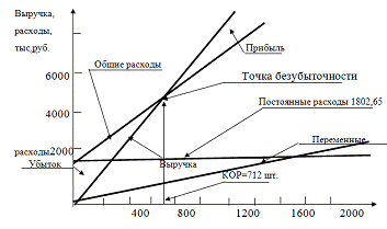 Графический анализ критического объема реализации изделий показан на рис.