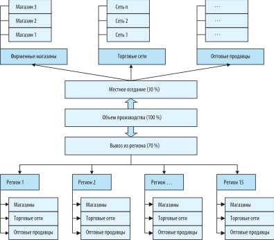 Преимущества: в наличии очень плотной сбытовой сети, разная рентабельность товаров по рынкам. Недостатки: существование большого числа мелких покупателей и сложный контроль за их платежеспособностью, трудно контролировать весь рынок, имидж марки товара трудно поддерживать.