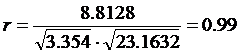 коэффициент корреляции весьма высок и колеблется в пределах 0,95-0,99, что
