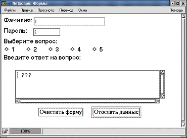 флажки, кнопки для отправки данных (Submit) и для очистки формы (Reset, Clear).