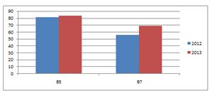 выполнения учащимися заданий В5, В7 КИМов ЕГЭ за два года