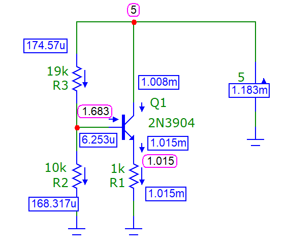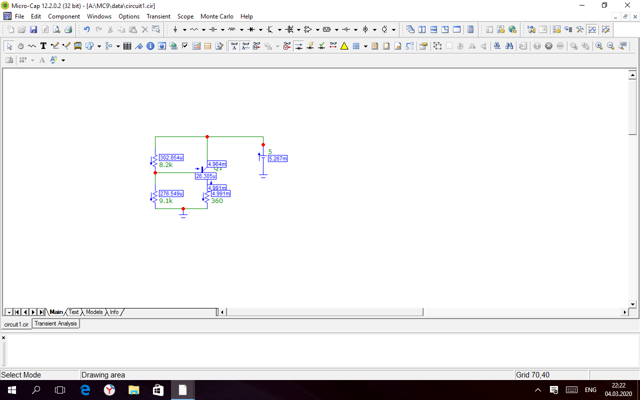 Рисунок 5. Схема источника тока на одном транзисторе, смоделированная в MicroCap