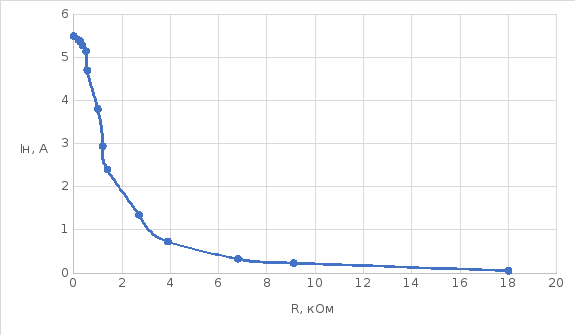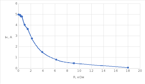 Рисунок 20. График зависимости тока от сопротивления нагрузки