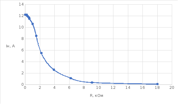 Рисунок 12. График зависимости тока от сопротивления нагрузки