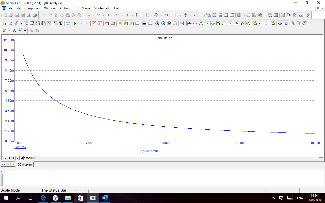 Рисунок 10. График зависимости тока от сопротивления нагрузки, построенный в MicroCap