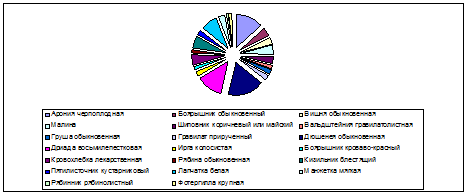 Видовой состав, за одно прохождение маршрута выявлен быть не может, для этого маршруты проходились три раза, а в числовое количество вида выводилось среднее значение.