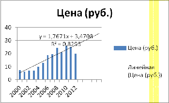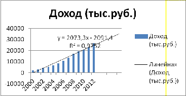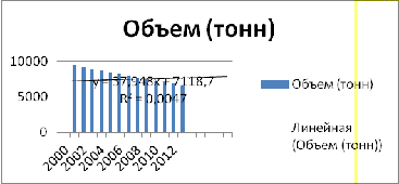 несколько лет вперед, построив диаграммы, с помощью линии тренда, по объему