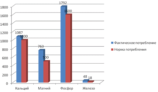 Рисунок 2 - сравнение между фактическим потреблением минеральных веществ