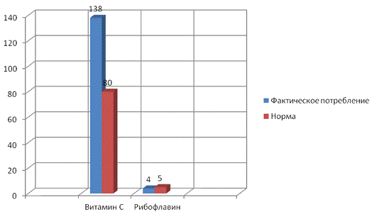 Рисунок 3 - сравнение между фактическим потреблением витаминов С и В2 и их нормой.