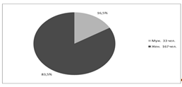 составляет 200 человек, 33 анкеты заполнили мужчины и 167 анкет заполнили