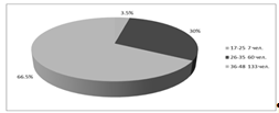 66,5%, то есть 133 человека. 30% или 60 человек - это жители в возрасте от 26